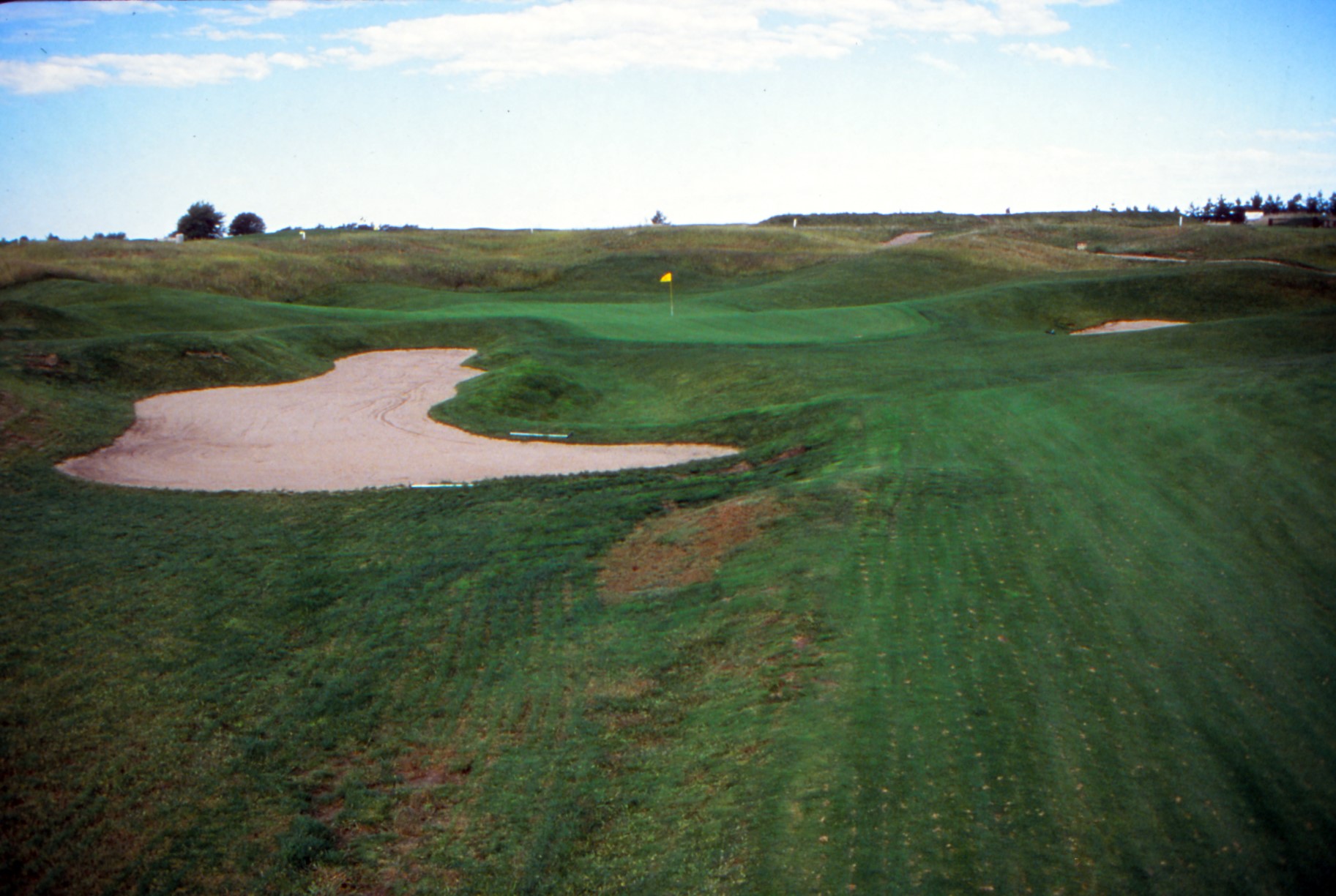 1985 Approximately 250,000 cubic yards of earth was moved during the rough grading process and work was generally completed by the fall of 1985. The fairways were seeded with Penlinks bent grass while the greens have a Pencross mixture.